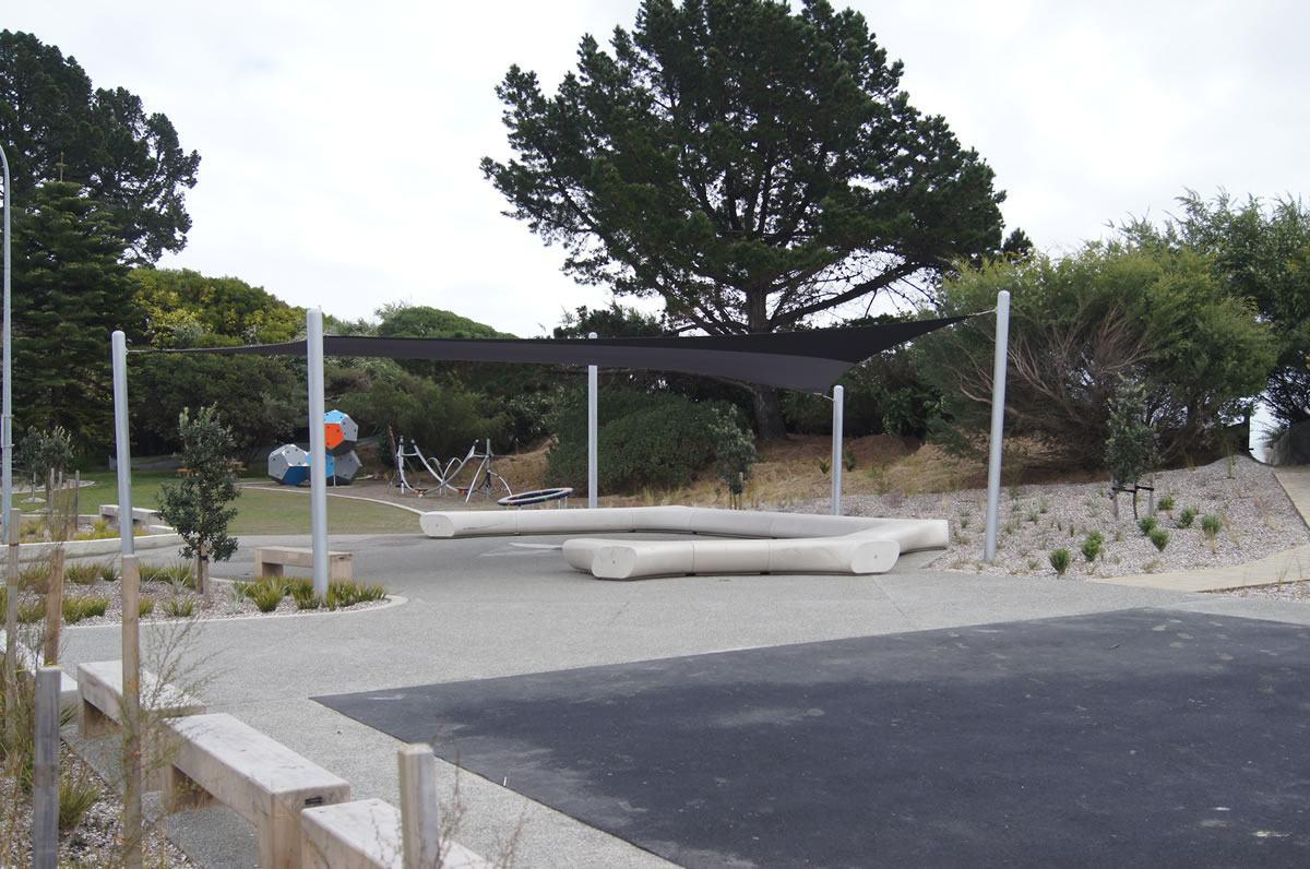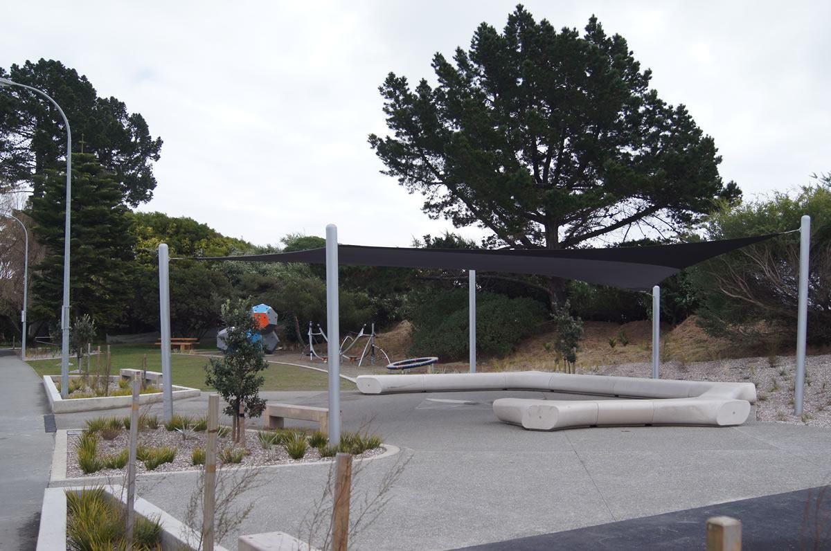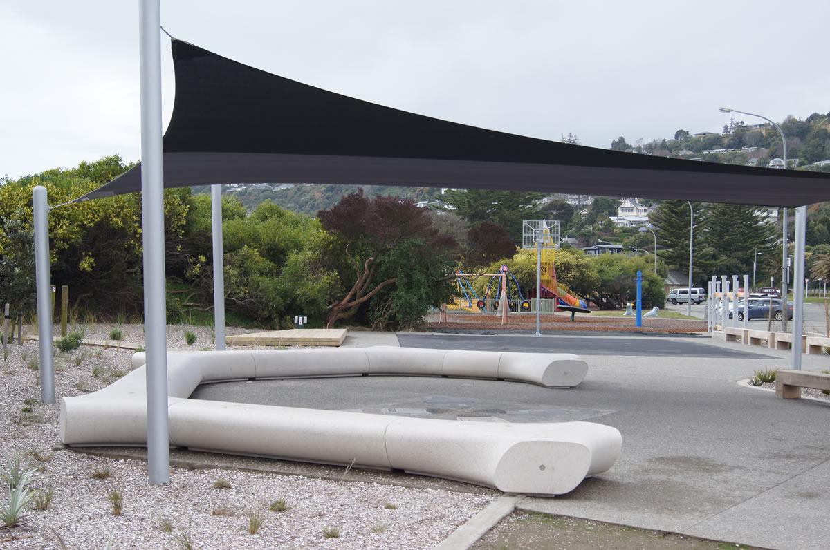 The contemporary seating solution provided by Urban Effects not only adds to the modern look of the youth park but also offers convenient seating around the edge of the shaded area. Positioned at the centre of the park as a ‘chill-out’ zone, the sheltered-seating area is a stylish and stand-out design feature of the space.